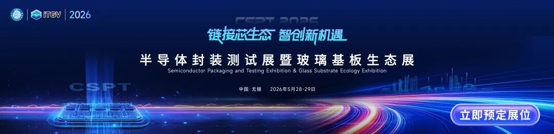 作为国内唯一涵盖整个封测行业的顶级研讨会,“CSPT2026 中国半导体封装测试技术与市场大会” 将于2026年5月27-29日在江苏无锡国际会议中心隆重召开。八大专题分论坛涵盖玻璃基板生态、FOPLP扇出面板级封装、ICP0国际光电合封、GCP玻璃线路板技术、高性能计算、系统软件、IC设计、2.5D/3D集成、IC载板与封装材料创新等,全面覆盖先进封装技术热点。