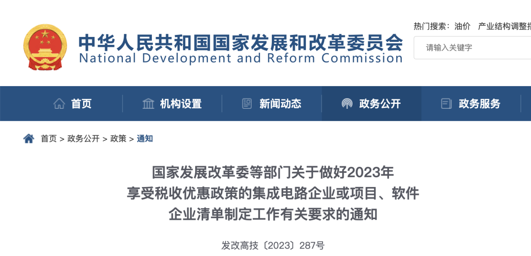国家发改委网站消息,国家发展改革委等部门发布关于做好2023年享受税收优惠政策的集成电路企业或项目、软件企业清单制定工作有关要求的通知。