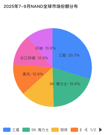 2025年,长江存储在全球NAND出货量中的份额在第一季度首次突破10%,第三季度进一步攀升至13%,直逼全球第四的美国美光科技。