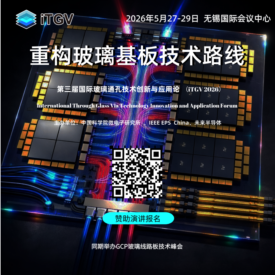 5月27-29日,无锡国际会议中心,iTGV2026第三届国际玻璃通孔技术创新与应用论坛将强势回归,本届以“重构玻璃基板技术路线,赢战玻璃基板量产元年”为大型主题,诚邀海内外AI设计公司、玻璃基板先进封装与核心材料工艺的同仁参与。iTGV2026将设立