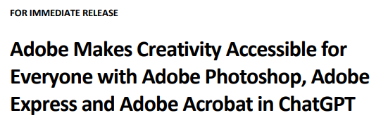 Adobe数字媒体部门负责人David Wadhwani在声明中表示,公司非常高兴能够与ChatGPT深度结合, 让每个人都可以借助AI自由的发挥创意,以及提高办公效率。