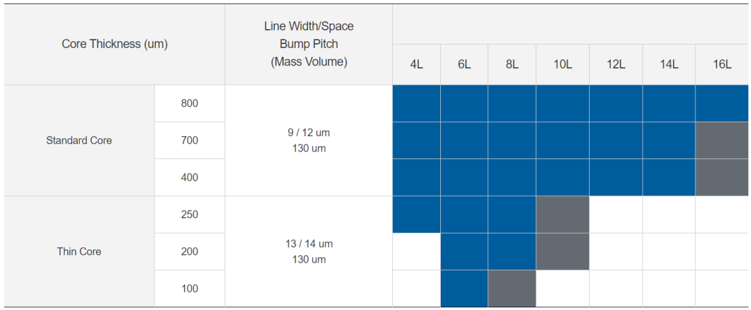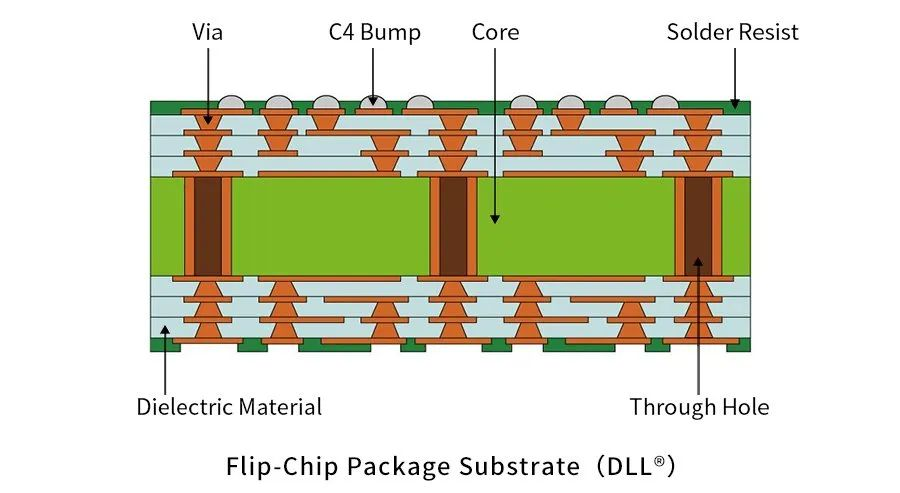 在全球半导体需求不断增长的情况下,日本Shinko将主要扩大面向高性能半导体的FCBGA封装基板的研发生产。SHINKO提供倒装芯片封装基板DLL,该基板通过使用半加成工艺、多层结构而具有精细的线路图案,并通过使用堆叠通孔结构而具有优异的电气特性和设计灵活性。SHINKO 开发了无芯封装 DLL3,该封装具有更薄的厚度结构、良好的电气性能和高设计灵活性。