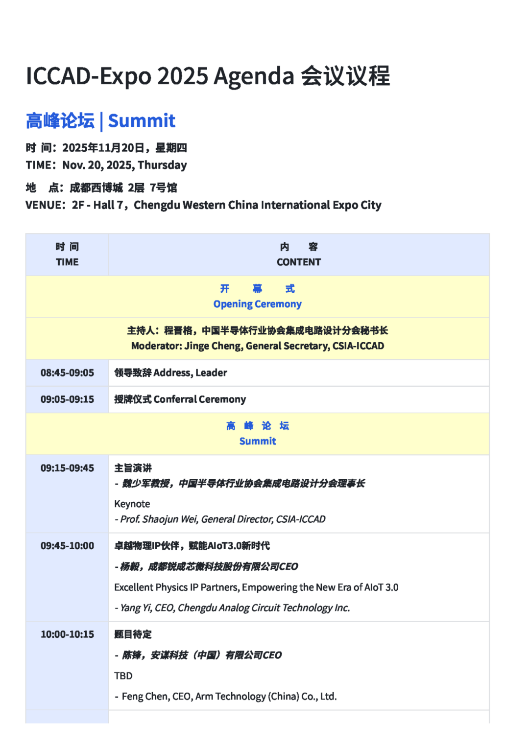 展商级别高、嘉宾级别高、观众级别高——这“三高”特质共同构筑了ICCAD Expo 2025无与伦比的平台价值。这里不仅是展示技术的窗口,更是建立连接、促成合作、驱动未来的核心场域。