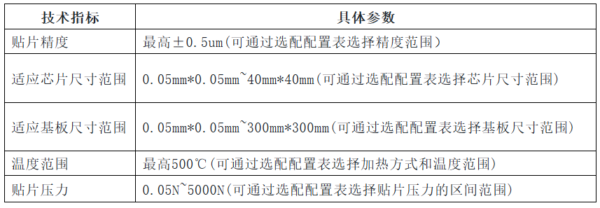 多功能亚微米贴片键合机的性能优劣,需通过一系列关键技术指标进行量化评估,这些指标不仅是设备研发的核心目标,更是满足不同场景封装需求的基础。