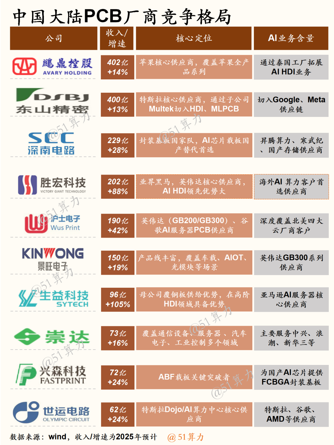 五大头部企业各有壁垒,沪电绑定英伟达、胜宏牵手AMD、深南依托云厂商、鹏鼎靠规模突围、生益握材料话语权,最终排位将由认证资质、良率水平、交付能力、成本控制四项核心指标决定。