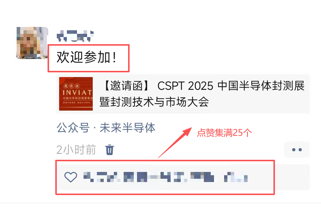 第2步:转发文章:《【邀请函】CSPT 2025 中国半导体封测展暨封测技术与市场大会》